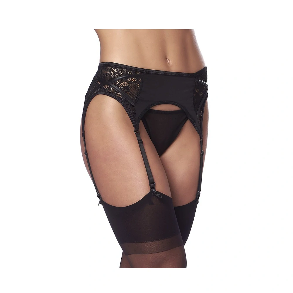 Podvazkový pás se zapíná vzadu na 2 háčky a má 3 polohy zapínání. 4 nastavitelné a odnímatelné podvazkové pásky udrží punčochy na svém místě i během divokých hrátek.